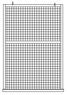 Panel size 116 �” long x 87″ high. End channels and center channels are made from12 gauge sheet (.105) thickness and are formed to allow insertion of 2″ lumber. Center channels are welded back to back to form a center column specifically designed to give added strength to the panel and the columns are notched to allow insertion of 2″ x 6″wood. Top and bottom tubes are made from 1 �”x 16 gauge square Tube. The top tube have (4) 7/16″ round holes used to mount the Grilles.