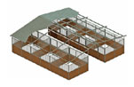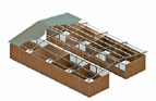 Triton Barn System stall panels are modular and easily convert to horse barns through the use of our heavy-duty steel trusses, posts and metal purlins. We can provide a complete turn-key system for a fraction of the price of a permanent stall barn. Virtually any horse stall layout can be designed to compliment a barn roof system that best suits your needs.