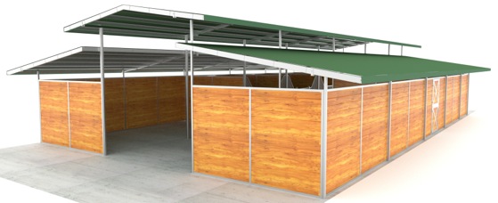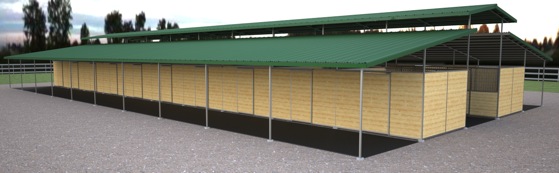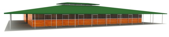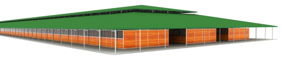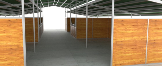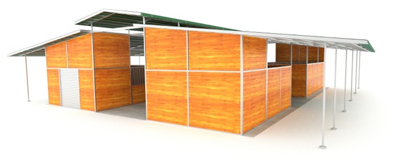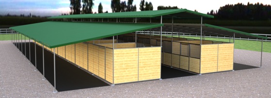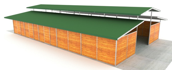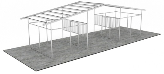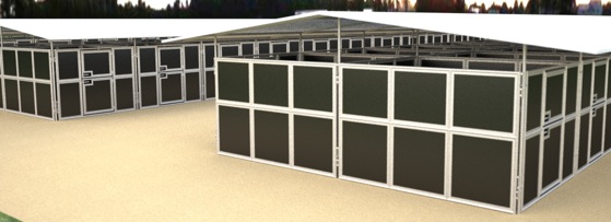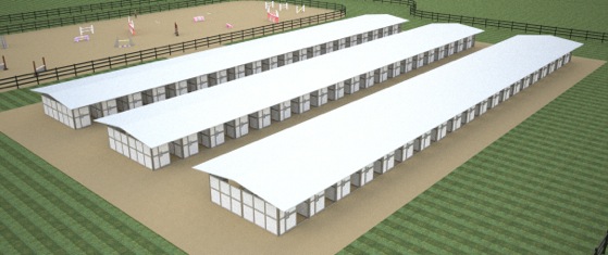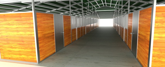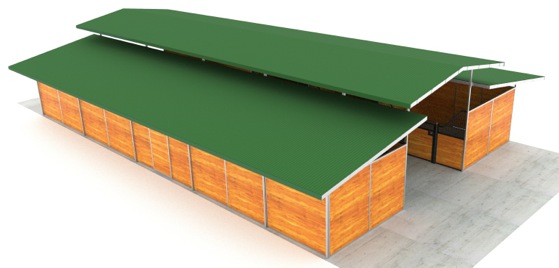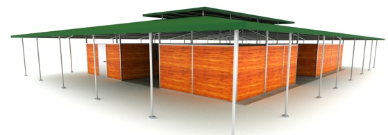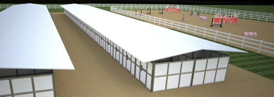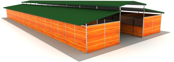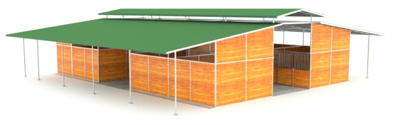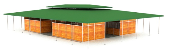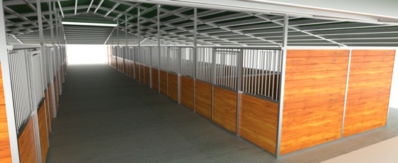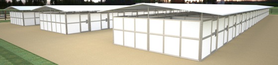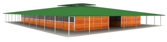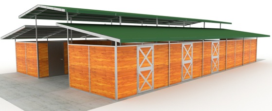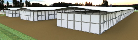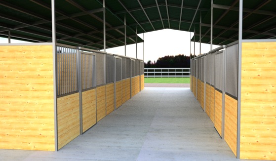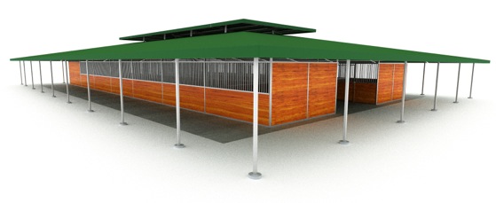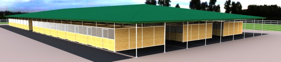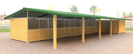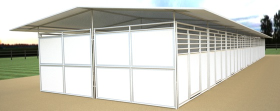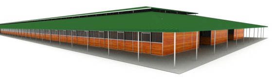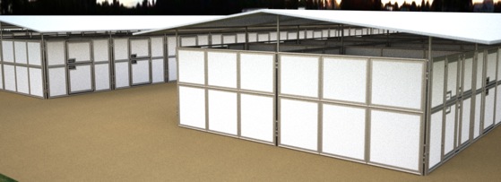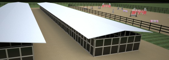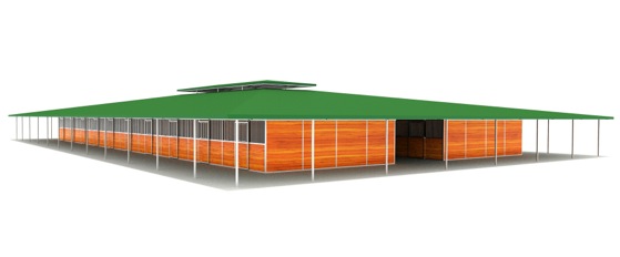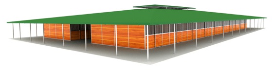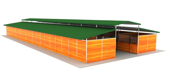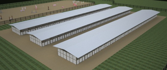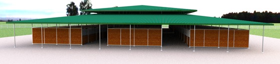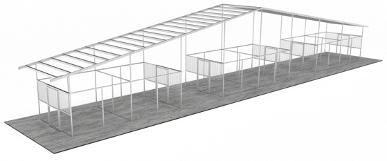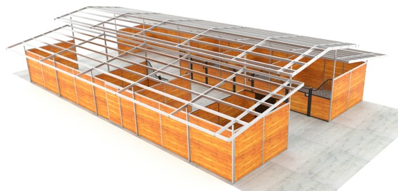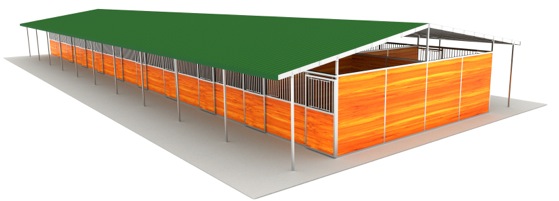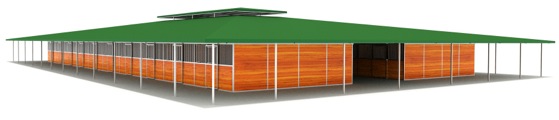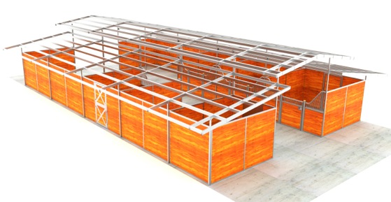Triton Barn System stall panels are modular and easily convert to horse barns through the use of our heavy-duty steel trusses, posts and metal purlins. We can provide a complete turn-key system for a fraction of the price of a permanent stall barn. Virtually any horse stall layout can be designed to compliment a barn roof system that best suits your needs.