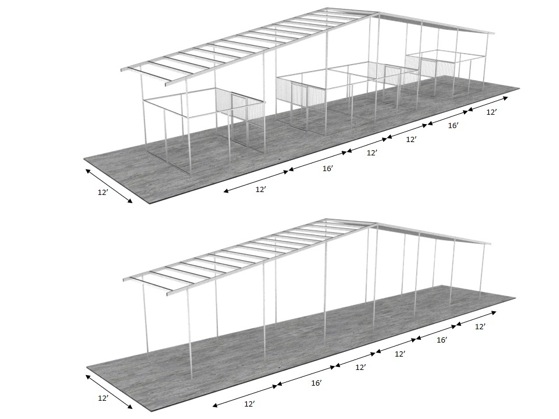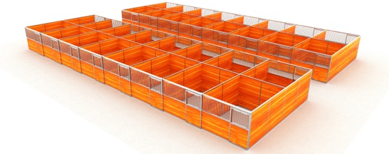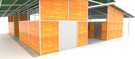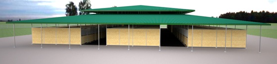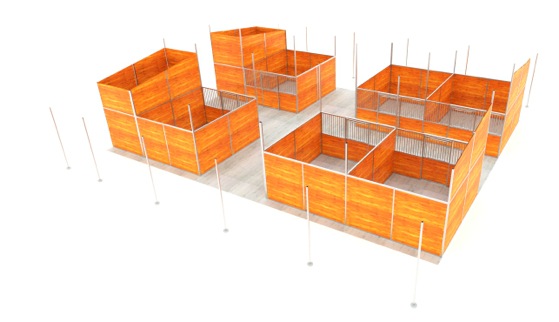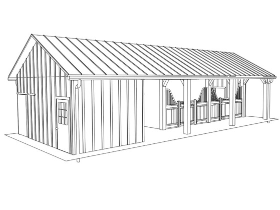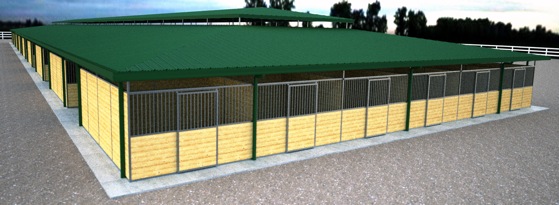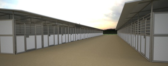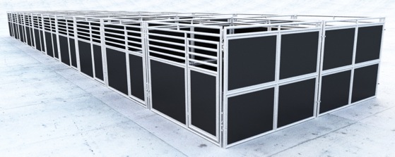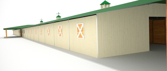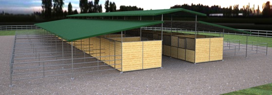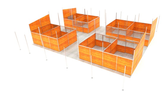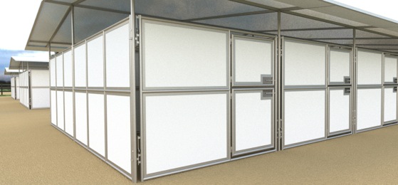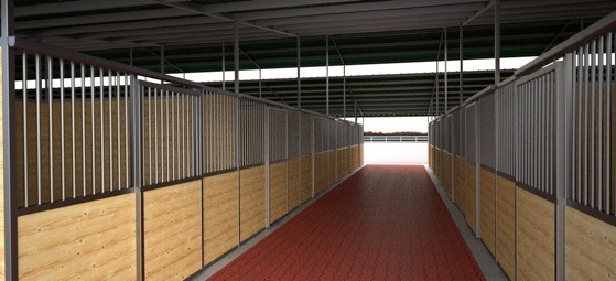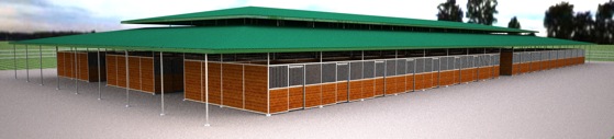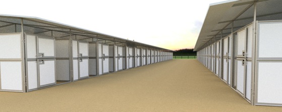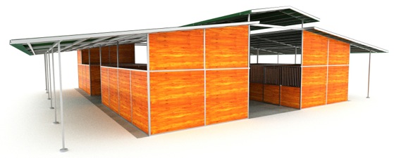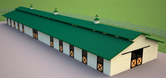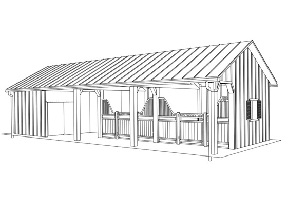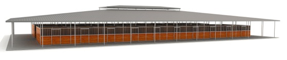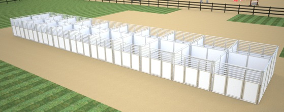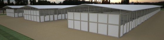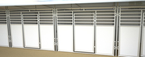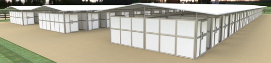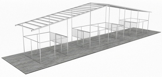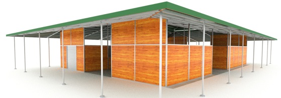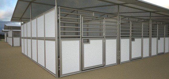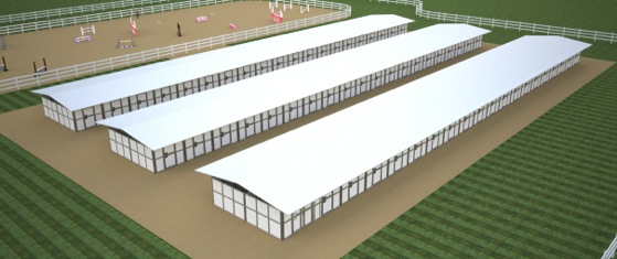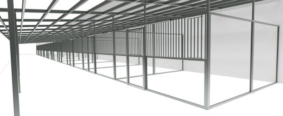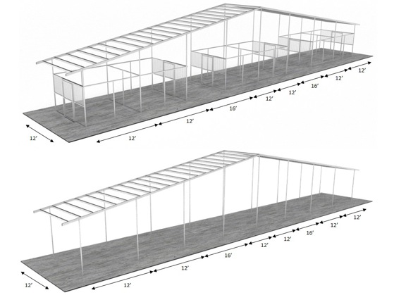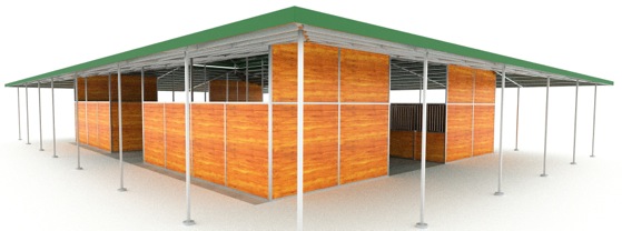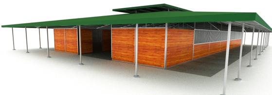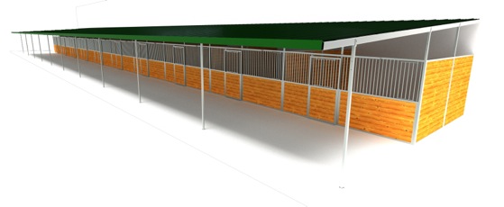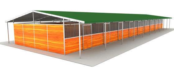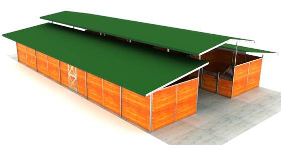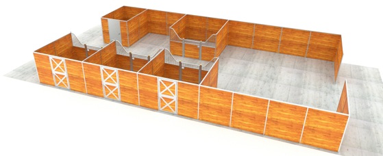 Triton Barn System stall panels are modular and easily convert to horse barns through the use of our heavy-duty steel trusses, posts and metal purlins. We can provide a complete turn-key system for a fraction of the price of a permanent stall barn. Virtually any horse stall layout can be designed to compliment a barn roof system that best suits your needs.