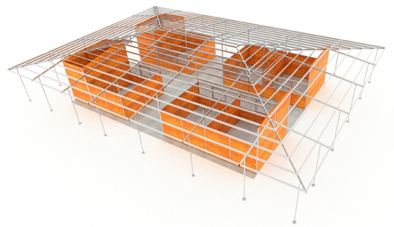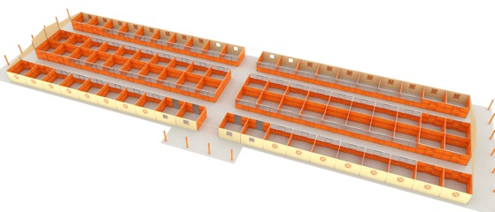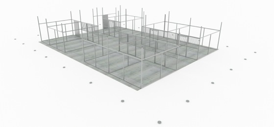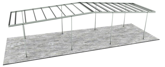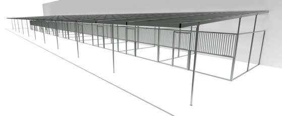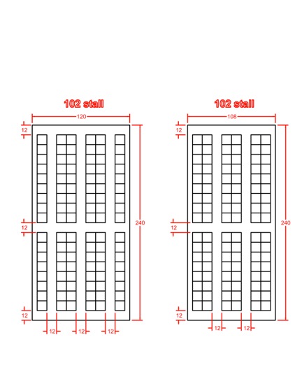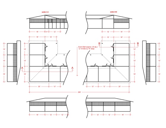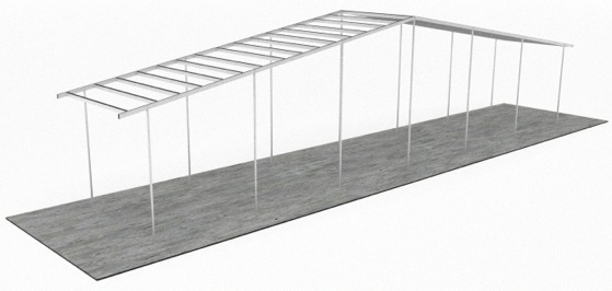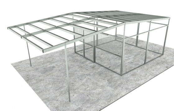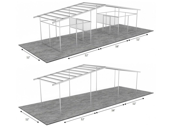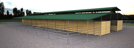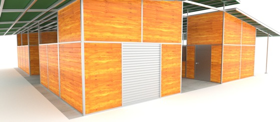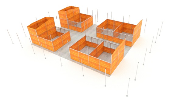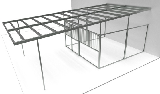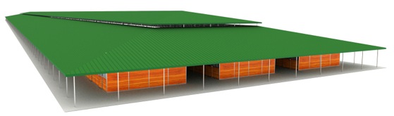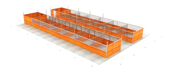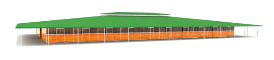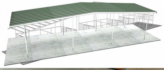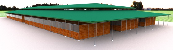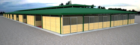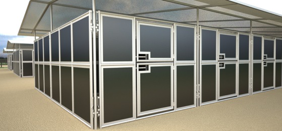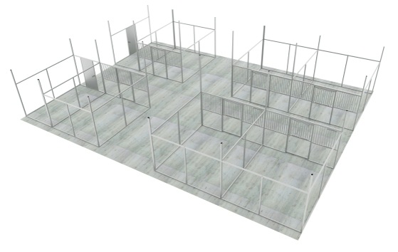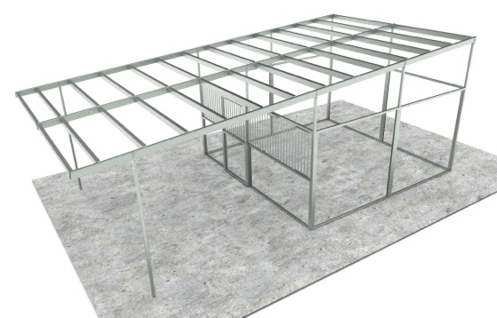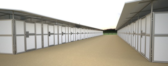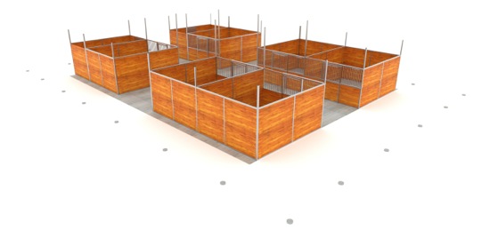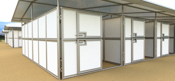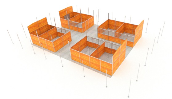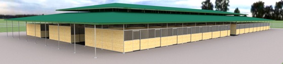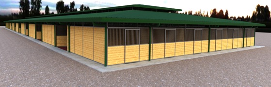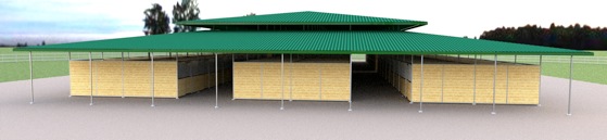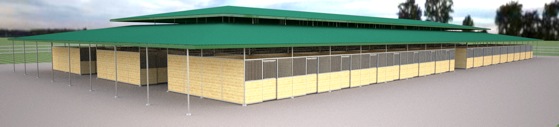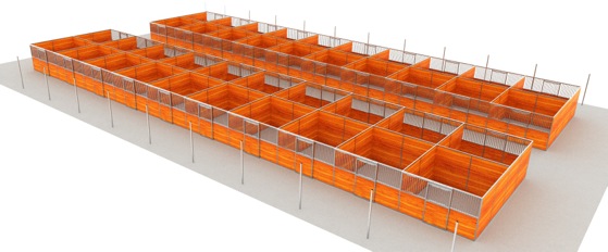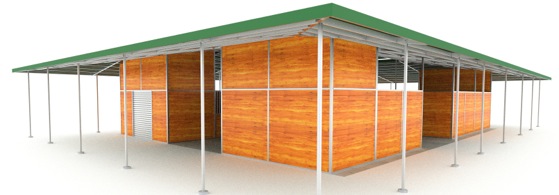 Triton Barn System stall panels are modular and easily convert to horse barns through the use of our heavy-duty steel trusses, posts and metal purlins. We can provide a complete turn-key system for a fraction of the price of a permanent stall barn. Virtually any horse stall layout can be designed to compliment a barn roof system that best suits your needs.