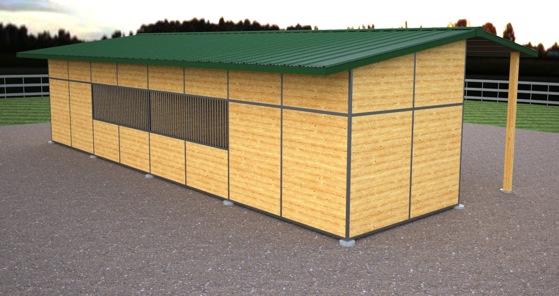 - Modular horse stalls can be insulated and finished on the outside, similar to wooden pole buildings.