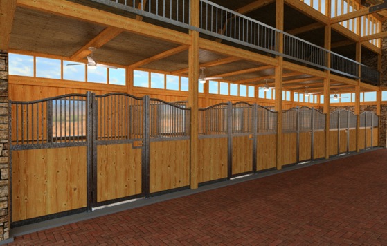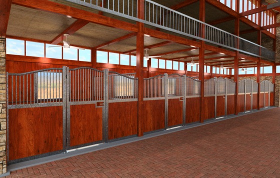 - A completed barn with roof installation, footings, sliding stall doors, T&G walls, galvanized bar fronts, rubber mats, 12′ center aisle with mats, concrete in tack/feed rooms and more costs about $10,000 per stall.